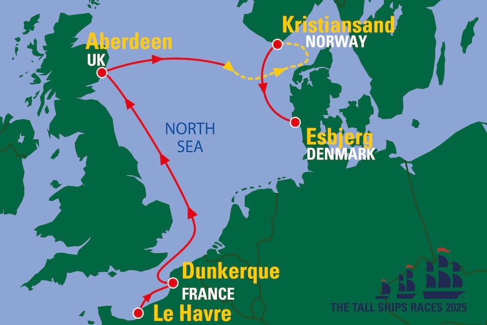 Duinkerke was één van de havens die in de Tall Ships Race 2025 werd aangedaan.