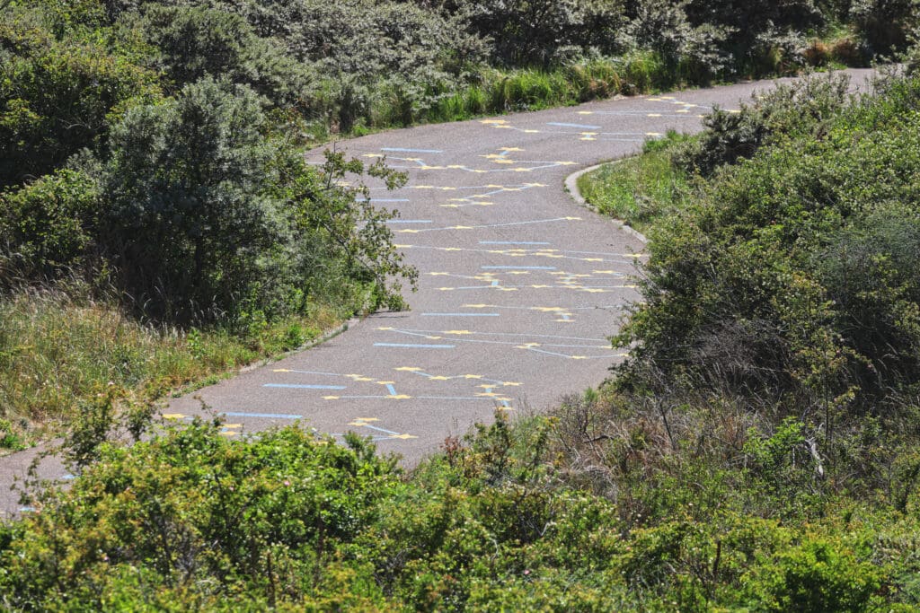The road to the Dunes House is decorated as a "play street." There are also beautiful, playful drawings about the Sun, planets, the cardinal directions and constellations. Original!
