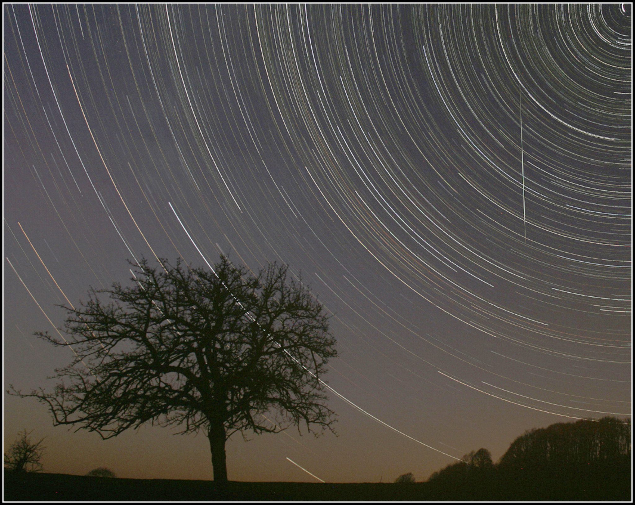 Hou er rekening mee dat de Aarde in één keer in één dag rond haar as wentelt. Zou je dus een sterrenspoor willen bekomen die één volledige cirkel omvat, dan zou je 24 uur aan één stuk moeten kunnen fotograferen. Door de seizoenen (schemering weet je wel) is dit normaal gezien onmogelijk: een vroeg opkomende Zon zal verhinderen dat je nog opnames kunt maken met een voldoende hoge signaal/ruisverhouding. De schemering zal de sterren als het ware wegvagen. Volg je gedurende 4 uren aan een stuk een stukje hemel, dan zul je boogcirkels van 360°/24 * 4 = 60° bekomen. Slaag je er in om 12 uren aan een stuk te fotograferen (in de winter bijvoorbeeld), dan zou je halve boogcirkels kunnen bekomen.