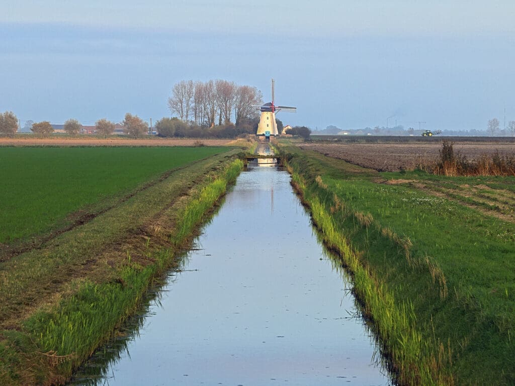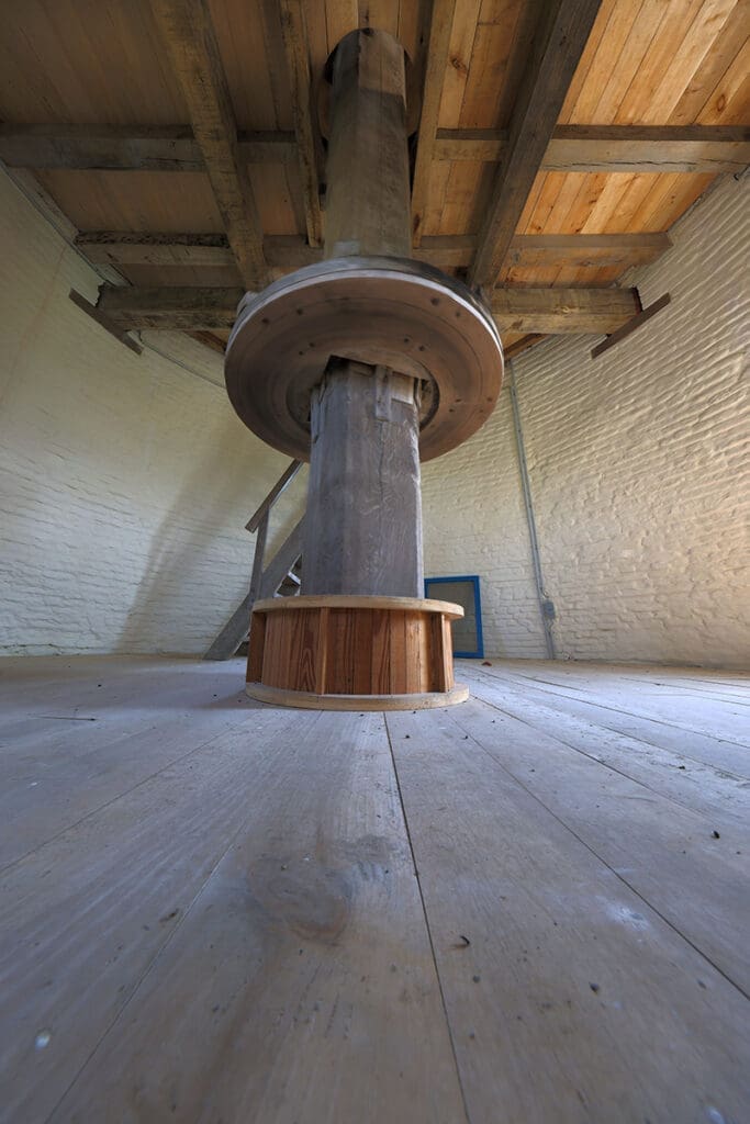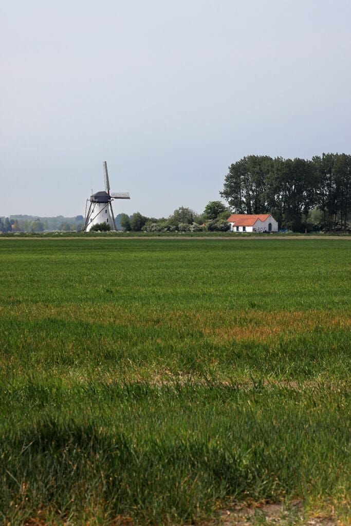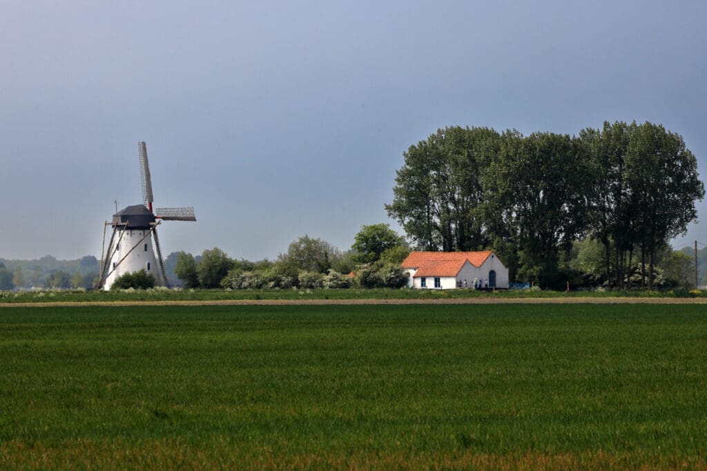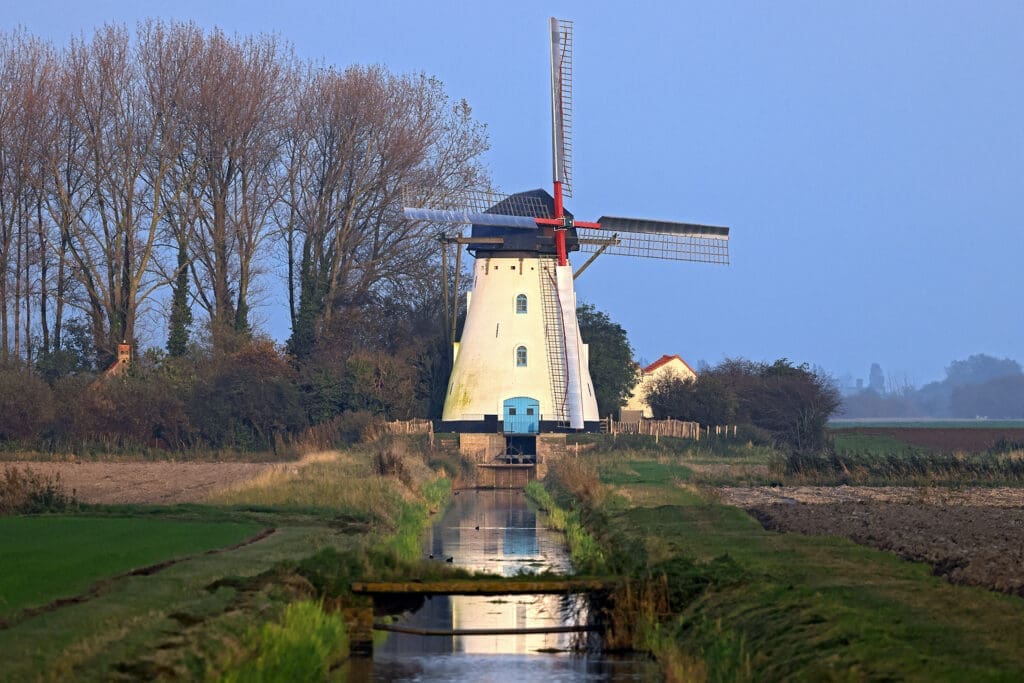 Moulin pittoresque utilisé à l'époque pour assécher les Moeren. Les Moeren sont des terrains situés plus bas que le niveau de la mer. De nombreux fossés et pompes étaient prévus pour les maintenir au sec.