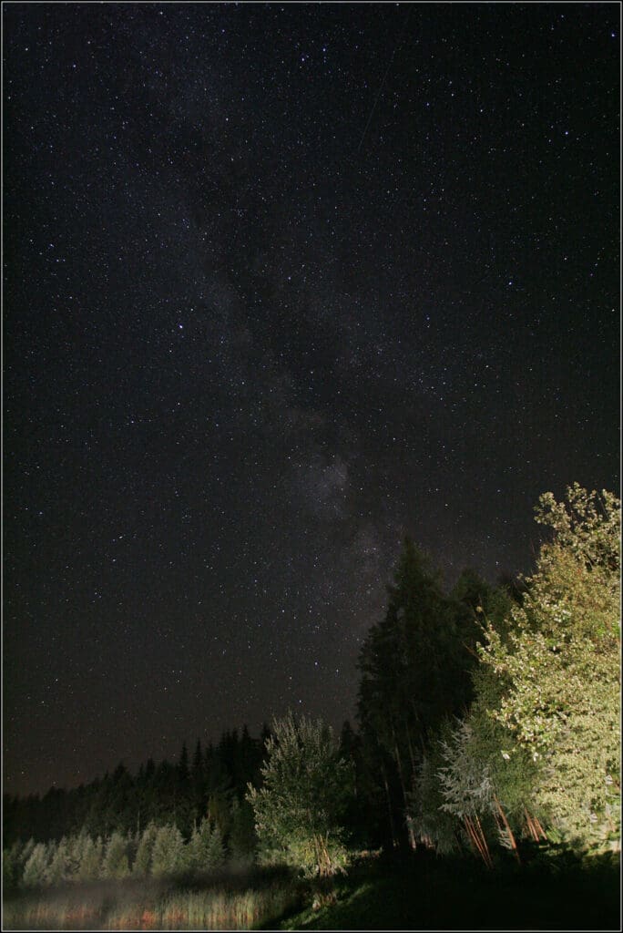 Conseil : une photo de la Voie lactée sera toujours plus réussie lorsque celle-ci est haute dans le ciel. Chez nous, c'est le cas en été. Profitez de cette position élevée, même si les nuits sont alors moins longues. Attendez toutefois que le crépuscule ait complètement disparu et que le ciel nocturne soit bien sombre.