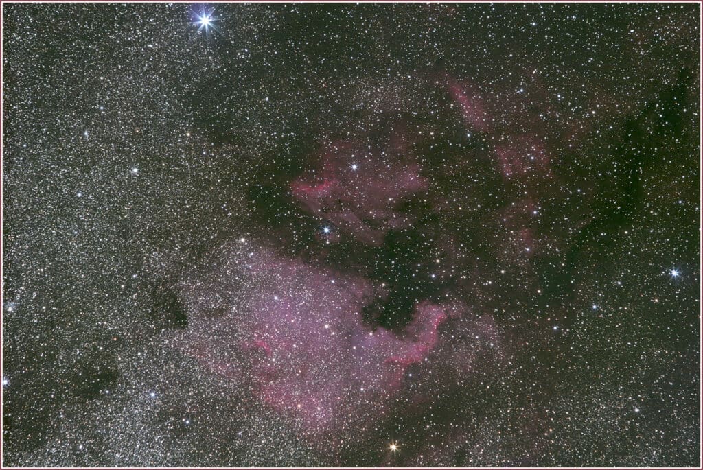 3) de vastes zones H-alpha (de couleur rougeâtre)