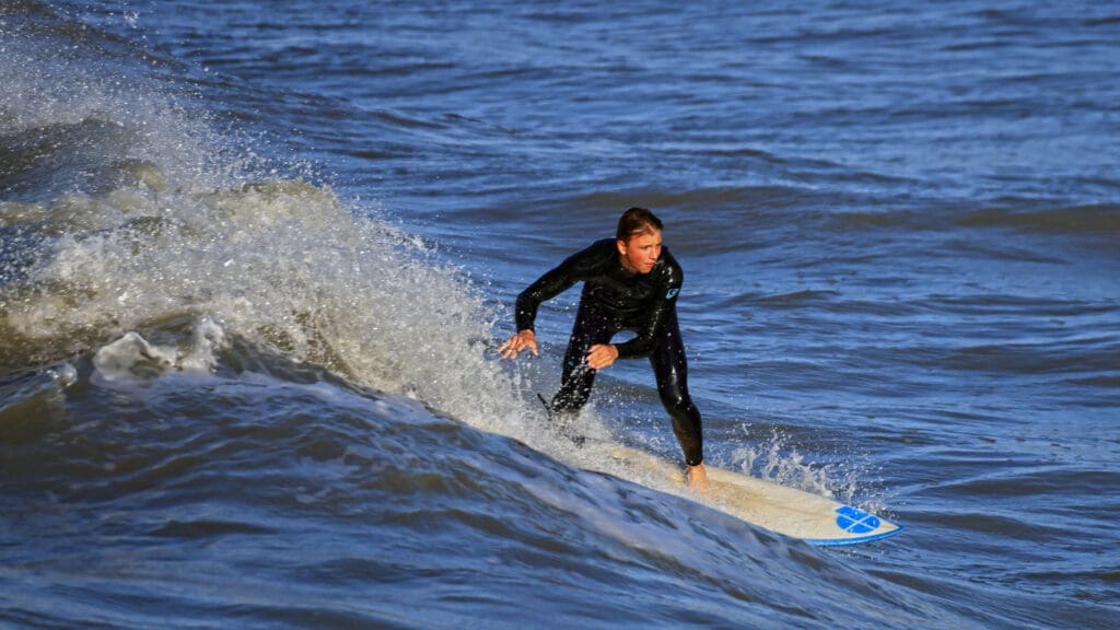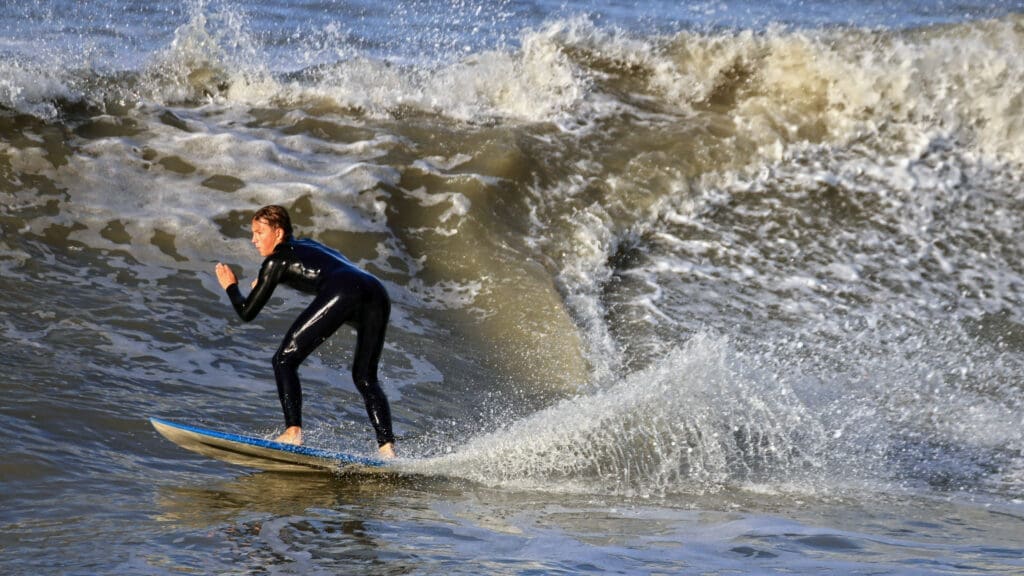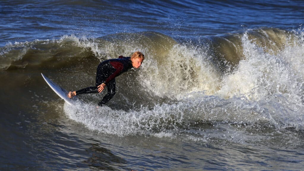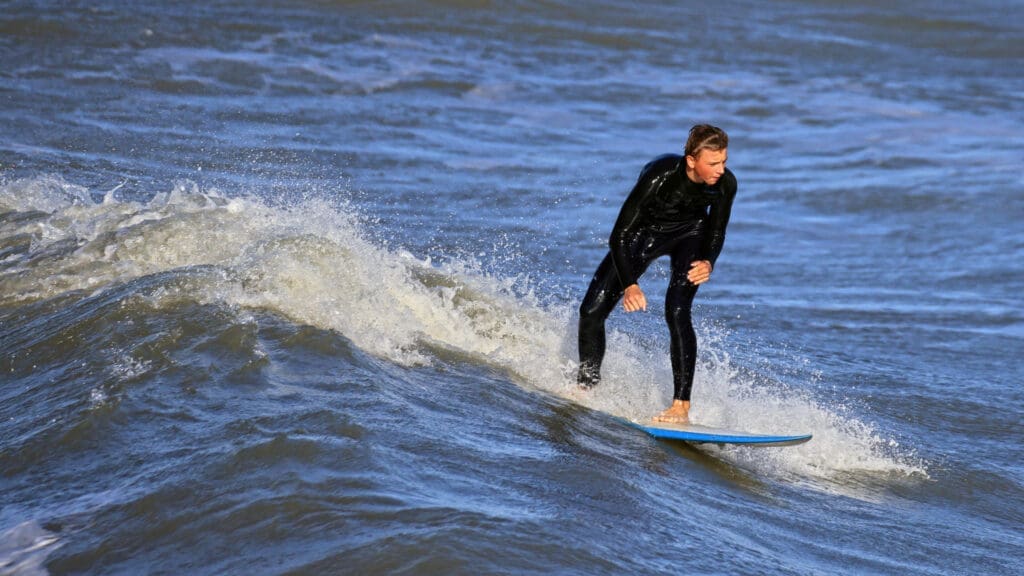 Tip 2: Vanop de pier heb je een mooi zicht op de surfers van Beachclub Blankenberge. Van op de pier kun je er mooie actiefoto’s maken (zie hieronder).