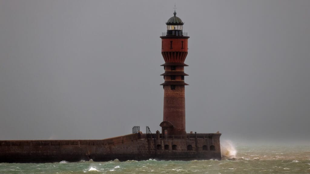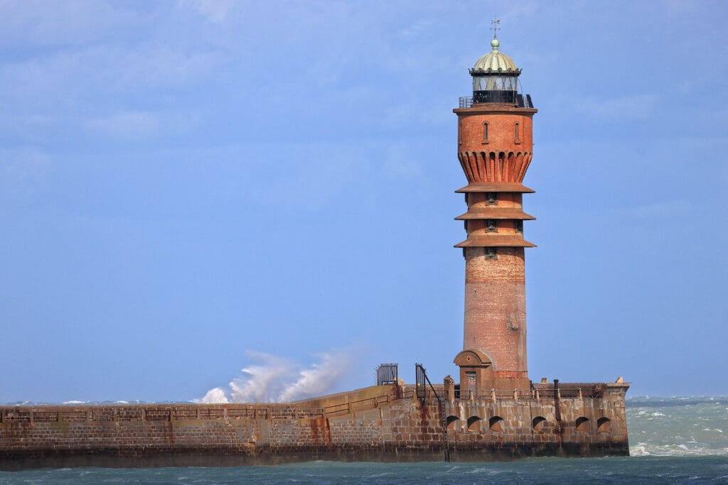 - De Pier van Duinkerke (vuurtoren “Feu de Saint-Pol”): hoog opspattend water