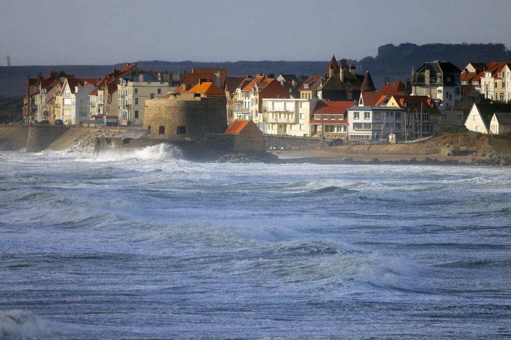 - Uitzichtpunt “La Pointe aux Oies“: dorp Ambleteuse met Fort Vauban te zien over een woelige baai