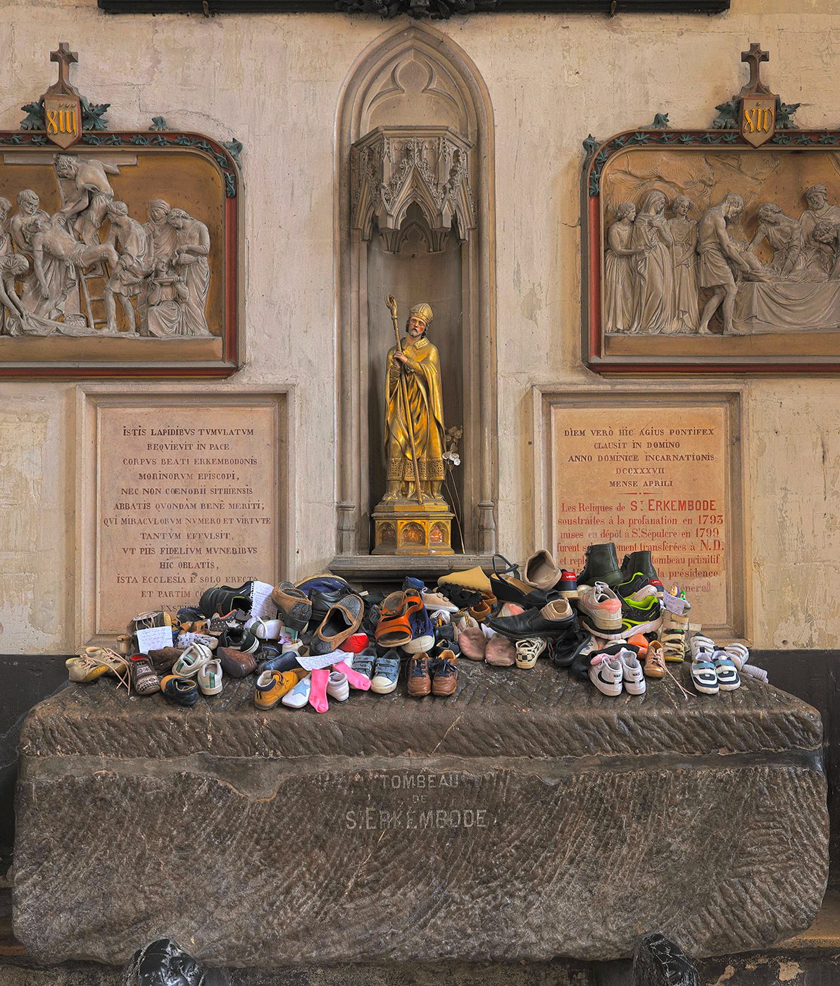 Er zijn nogal wat gelovigen die naar de Kathedraal van Sint-Omaars trekken om een mirakel te vragen aan Sint Erkembode (Erkembodo). Hij was de vijfde bisschop van Terwaan. Deze Heilige wordt aanroepen om mensen goed of weer te doen lopen. Zijn porfieren graf bevindt zich nabij het altaar. Daar vind je dan ook tientallen (vooral kinder-)schoentjes. Zie de fotosectie hieromtrent.