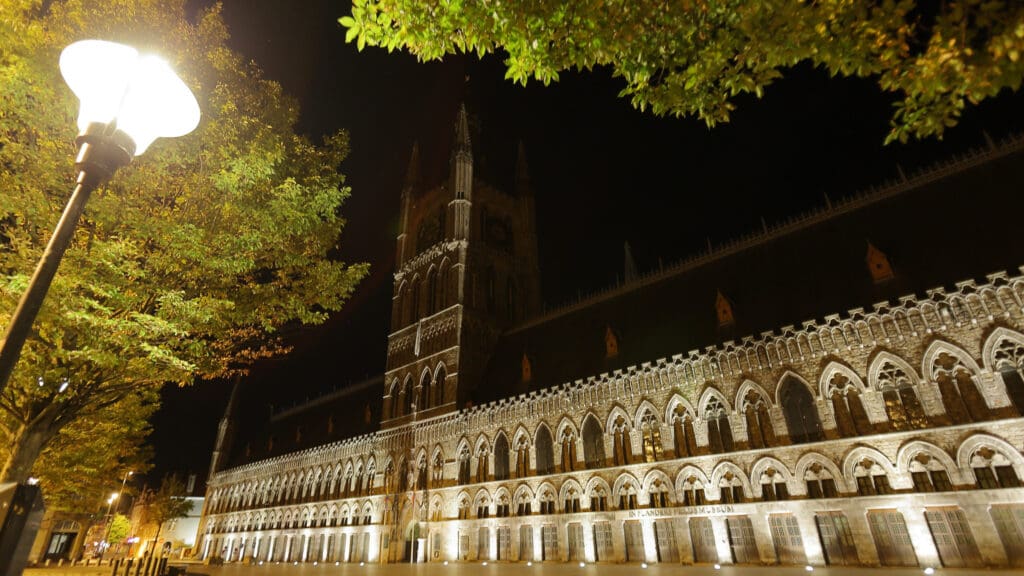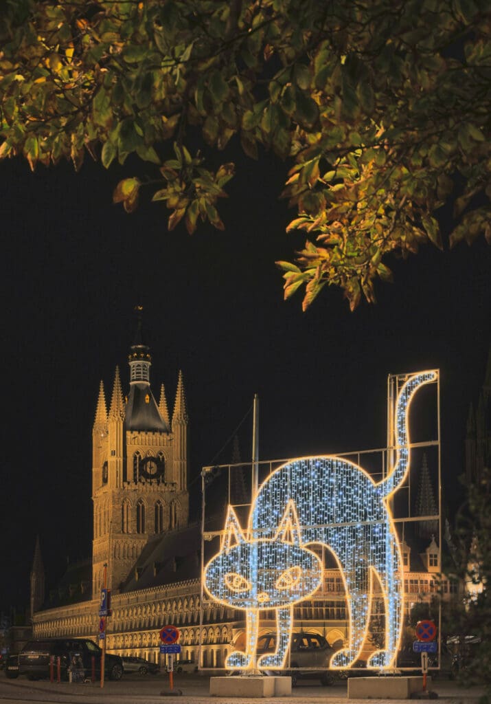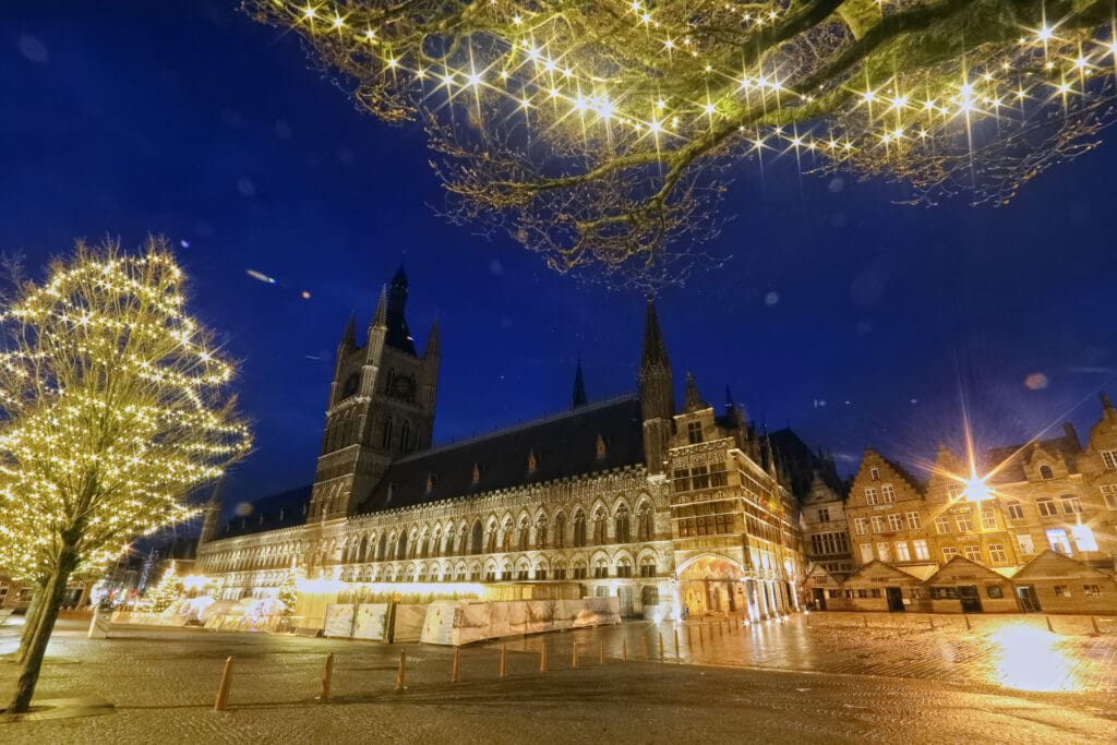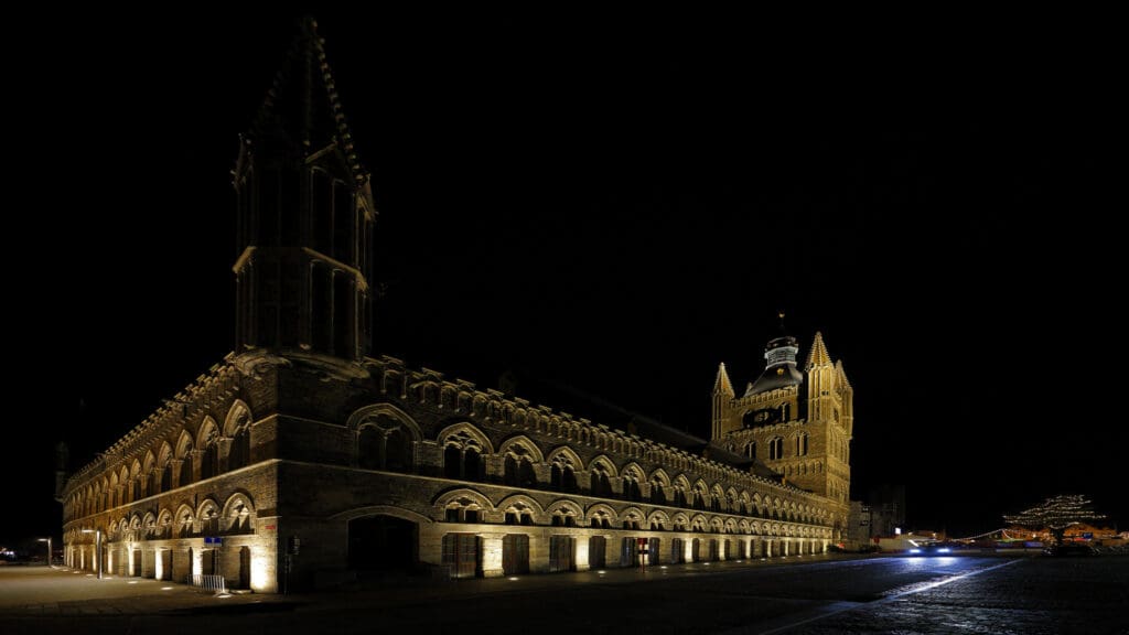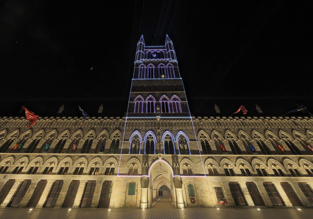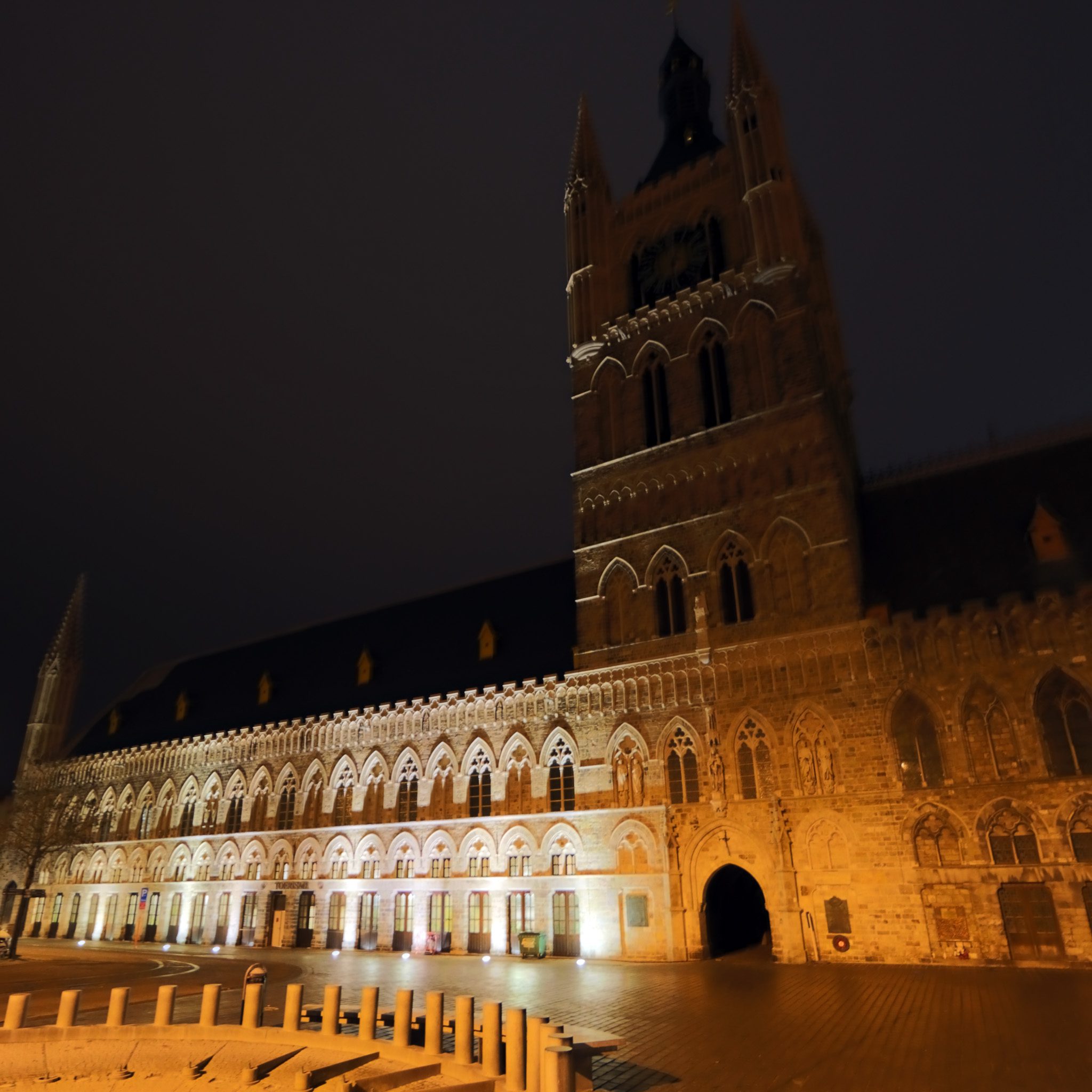 - 360° foto van de Ieperse Lakenhallen (Markt-zijde, ‘s nachts):