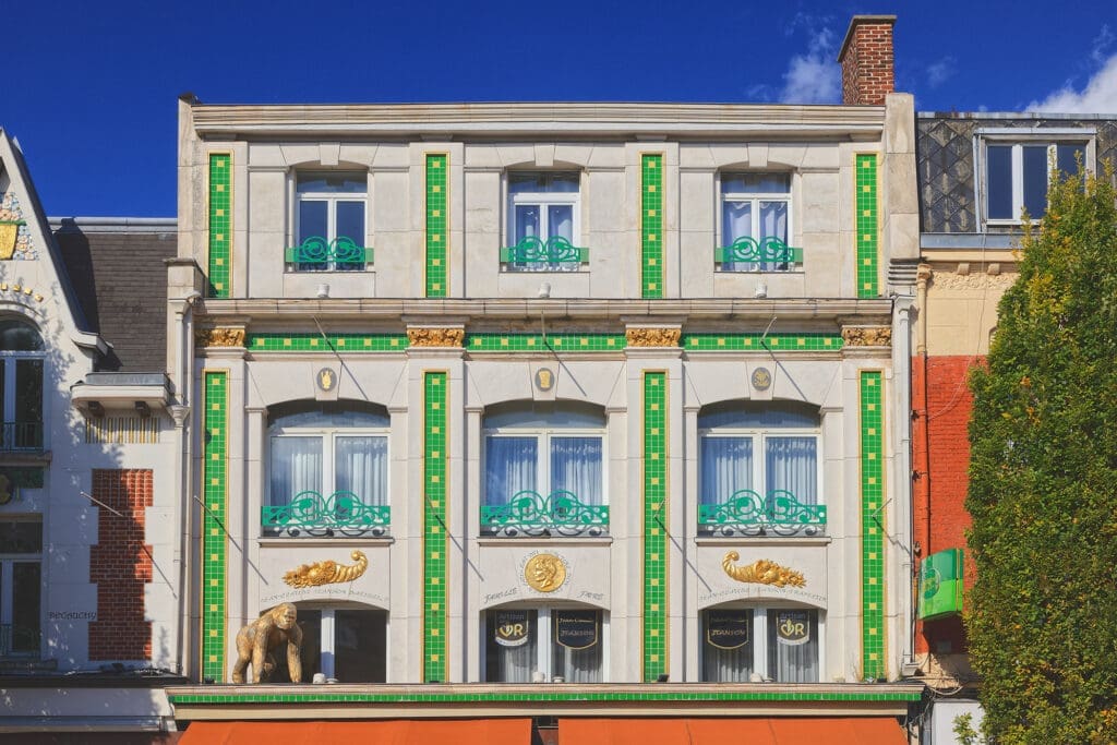 Tip 3: Hou je van architectuur in het algemeen, en art deco in het bijzonder, loop dan even binnen in de Dienst voor Toerisme (Place Jean Jaurès). Je kunt er een boekje “Parcours Architectures du Centre-Ville Lens” met plannetje krijgen waar alle interessante gebouwen op vermeld staan. Het is gratis en ook bijzonder praktisch. Nu is er wel het een en het ander te zien in Lens qua art deco, maar verwacht er anderzijds toch ook niet té veel van. Het is duidelijk dat men hier Lens als een “art deco product” probeert te verkopen, maar daar is toch nog wel wat werk aan. Sowieso zijn er hier en daar wel enkele mooiere gevels te zien (zie foto’s hieronder). Hoogtepunten zijn uiteraard het station, de voormalige “Les Grands Bureaux de la Société des Mines” (die echter maar enkel heel uitzonderlijk écht te bezoeken valt – het park is wel altijd vrij toegankelijk), “La Ville de Limoges” (waar de Dienst voor Toerisme is gehuisvest) en de gevel van bakkerij/patisserie “Jeanson“, beiden op de Place Jean Jaurès.