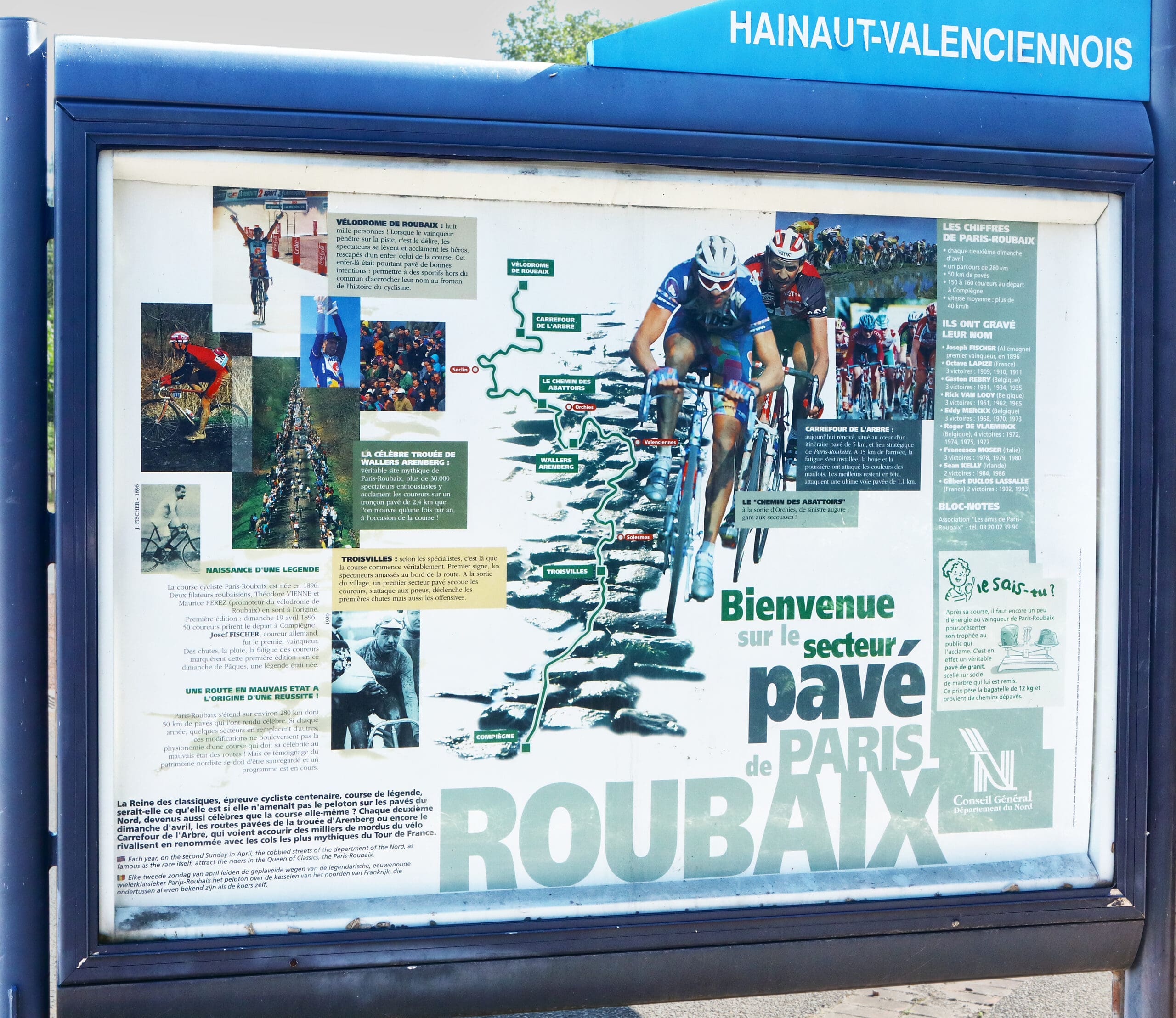 De De doorgang van Wallers-Arenberg is een begrip in de internationale wielrennerij: het is de zwaarste kasseienstrook in de wielerklassieker Parijs-Roubaix. Ze loopt door een stuk bos. Niet toegankelijk voor auto’s en vrachtverkeer. Vooral in regenweer levert deze strook veel slachtoffers. Ze bepaalt soms in grote mate het verloop van deze koers. Moet je gezien hebben. 😉