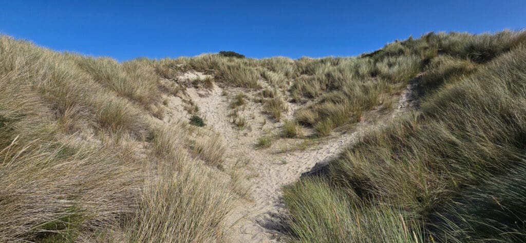 Tip 2: Op zonnige dagen kan het daar in de windvrije zones tussen de duinenheuvels behoorlijk warm worden. Voorzie je er op: doe voldoende water mee, zonnecrème en beschermende kledij. Consulteer het weerbericht hieronder.