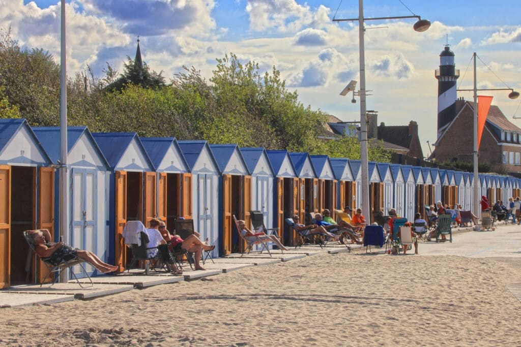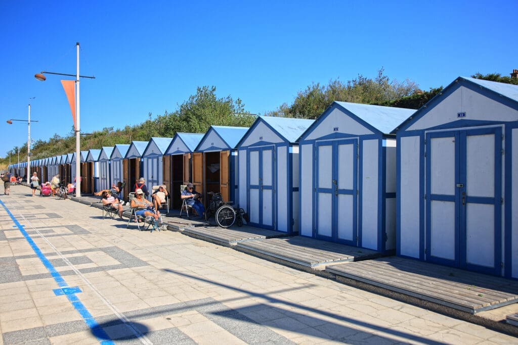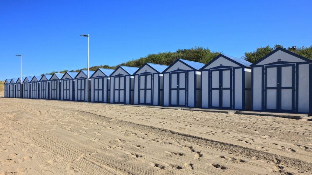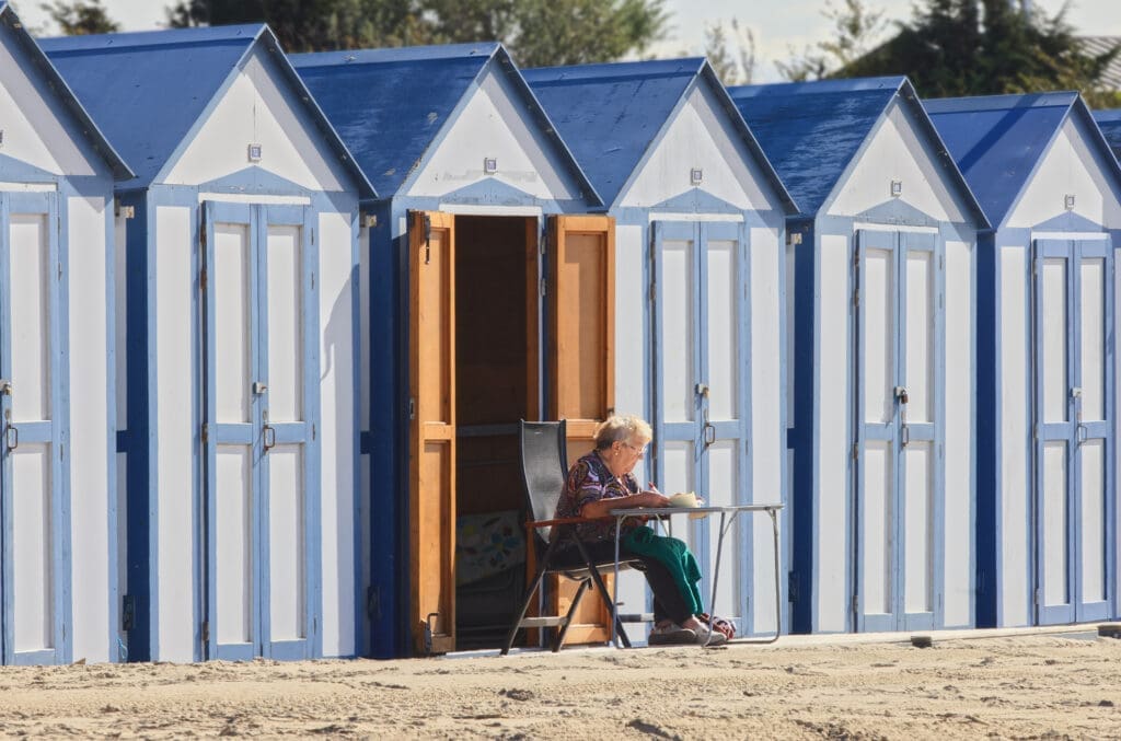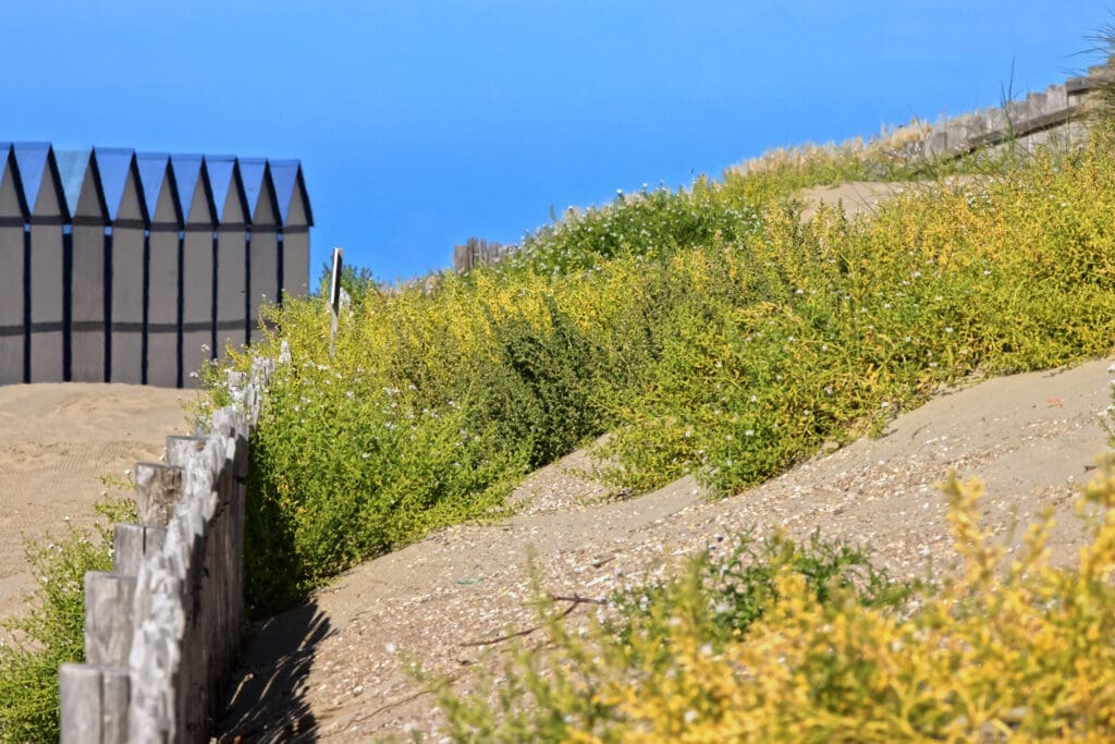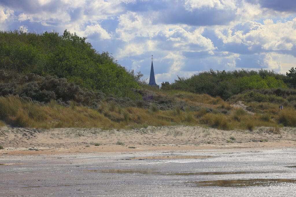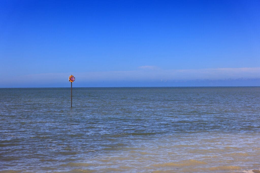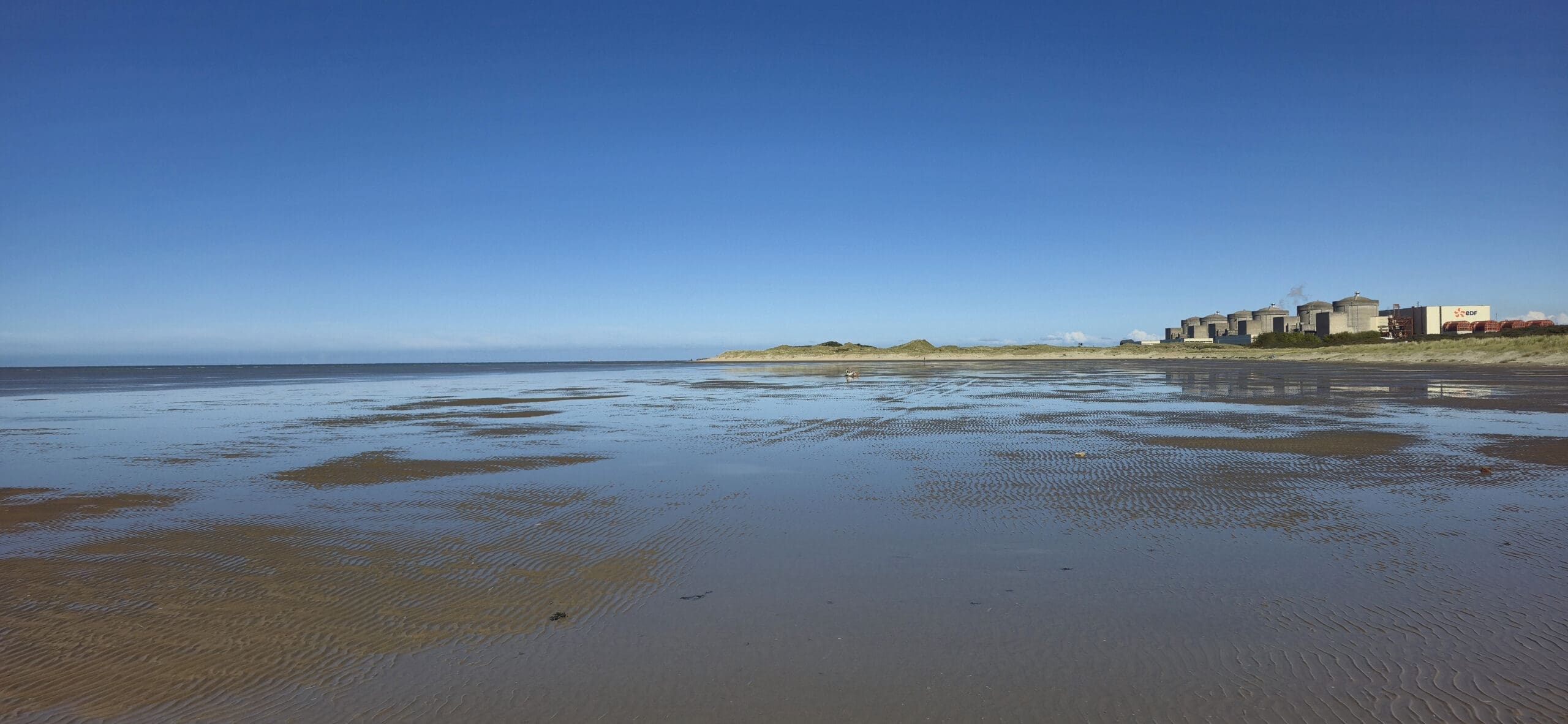 Tip 4: Ben je aan de vuurtoren, loop dan eens verder door tot aan het strand. Je ziet er de meer dan 100 blauw-witte strandcabines en je kunt er doorlopen tot bijna aan de kerncentrale. Er is een spectaculair effect van eb en vloed: in minder dan een uurtje tijd staat de hele vlakte (z)onder water! Zie de foto’s hieronder.