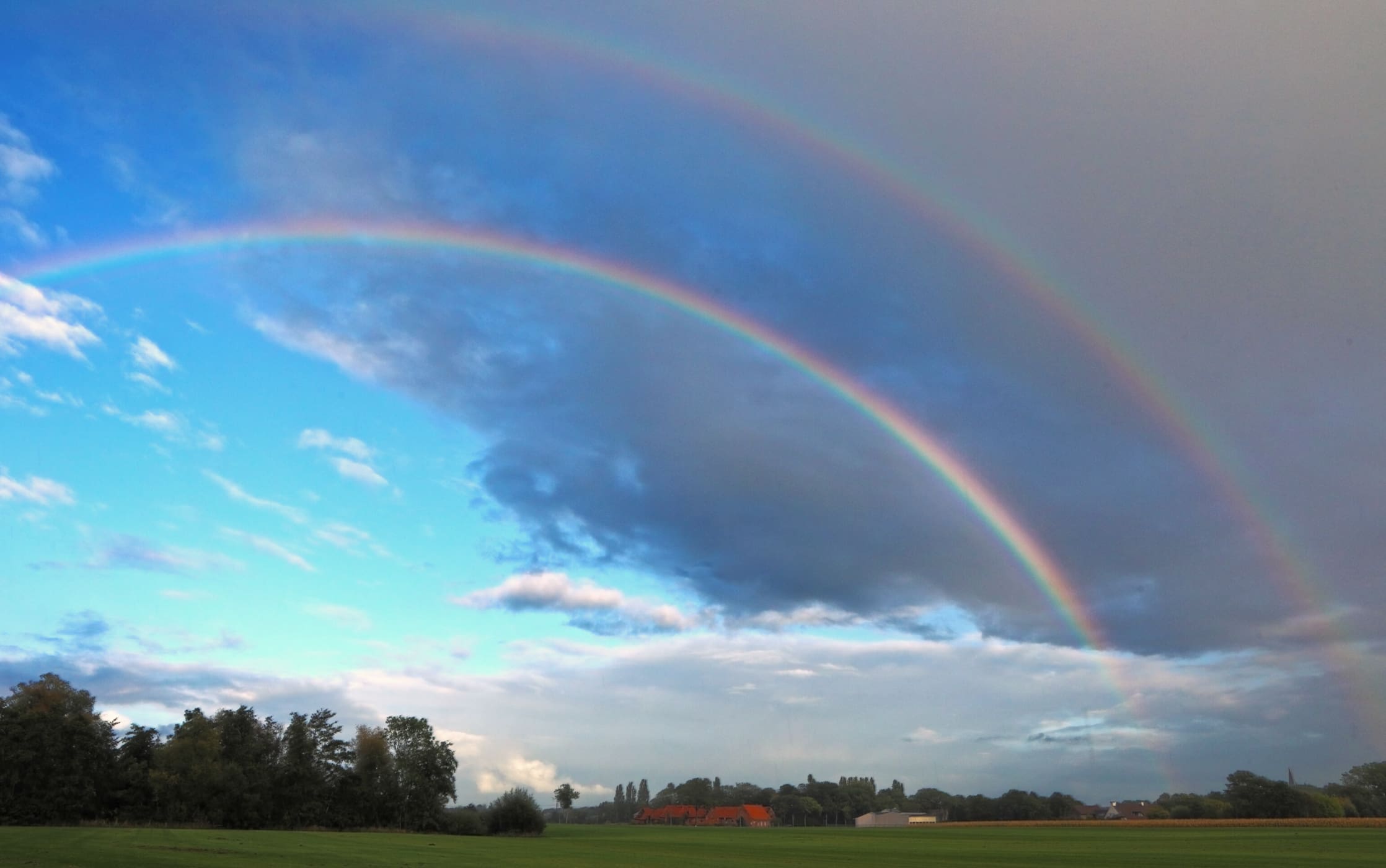 Is het mogelijk dat er een dubbele regenboog zichtbaar is?