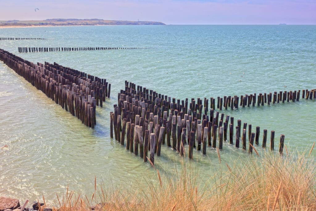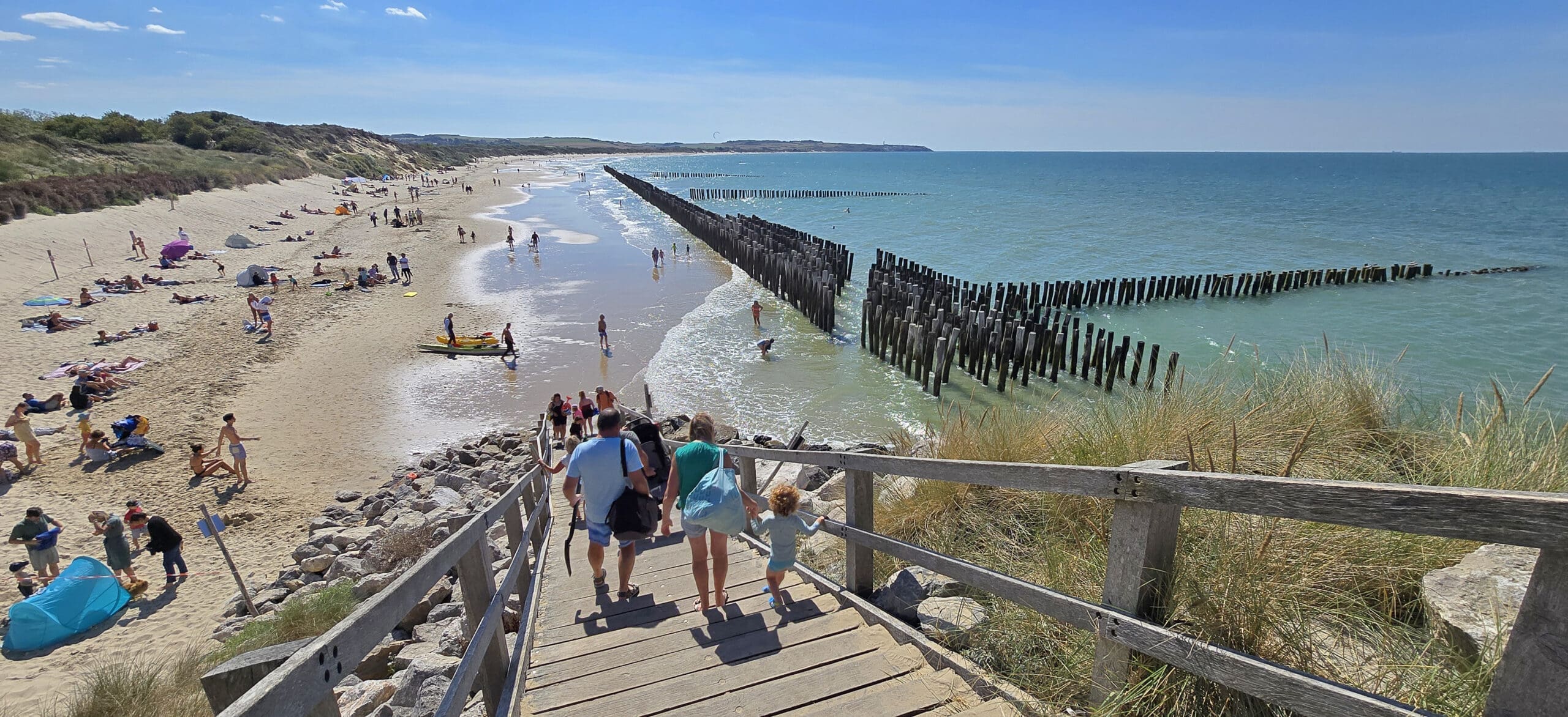 De dijk werd nog niet zo lang geleden volledig vernieuwd. Vanaf de dijk kun je rechts zeer goed de Cap Blanc-Nez zien én, bij helder weer uiteraard, de krijtrotsen van Engeland. Aan de Westelijke (linker) kant zie je dan weer de Cap Gris-nez.